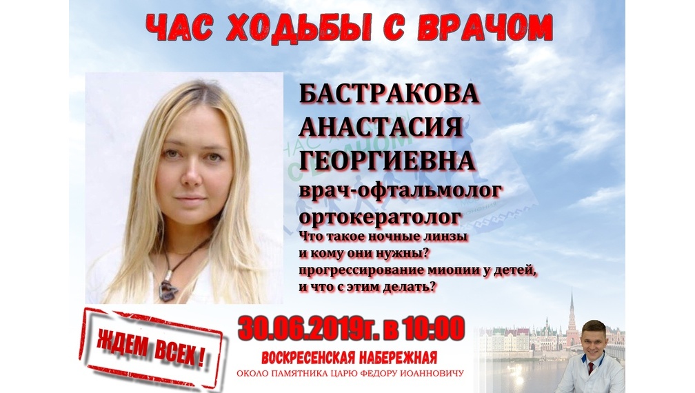 В воскресенье, 30 июня, «Час ходьбы с врачом» проведёт Анастасия Бастракова — врач-офтальмолог.