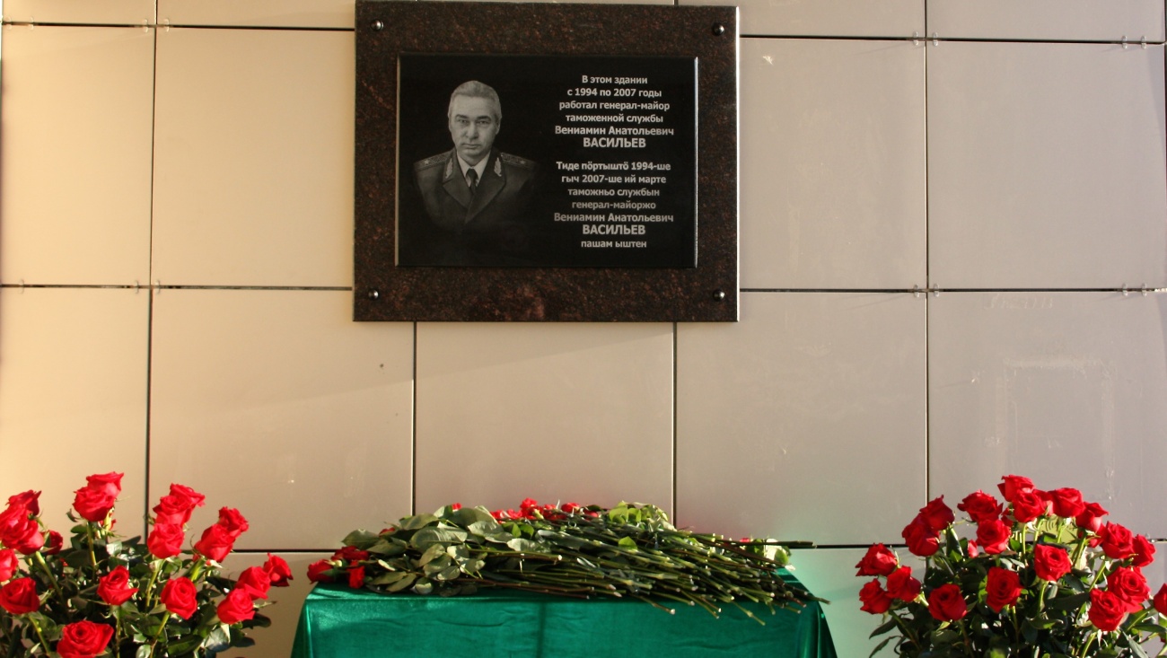 Сегодня в Йошкар-Оле прошла торжественная церемония открытия памятной доски, посвященной генерал-майору таможенной службы, начальнику Центральной энергетической таможни Российской Федерации Вениамину Васильеву.