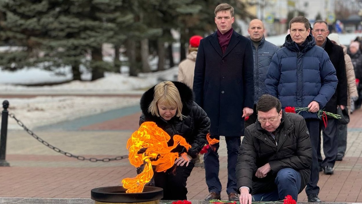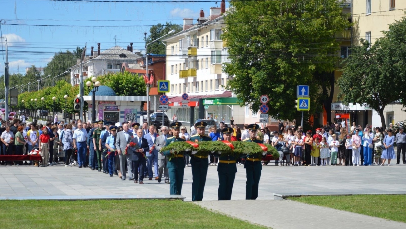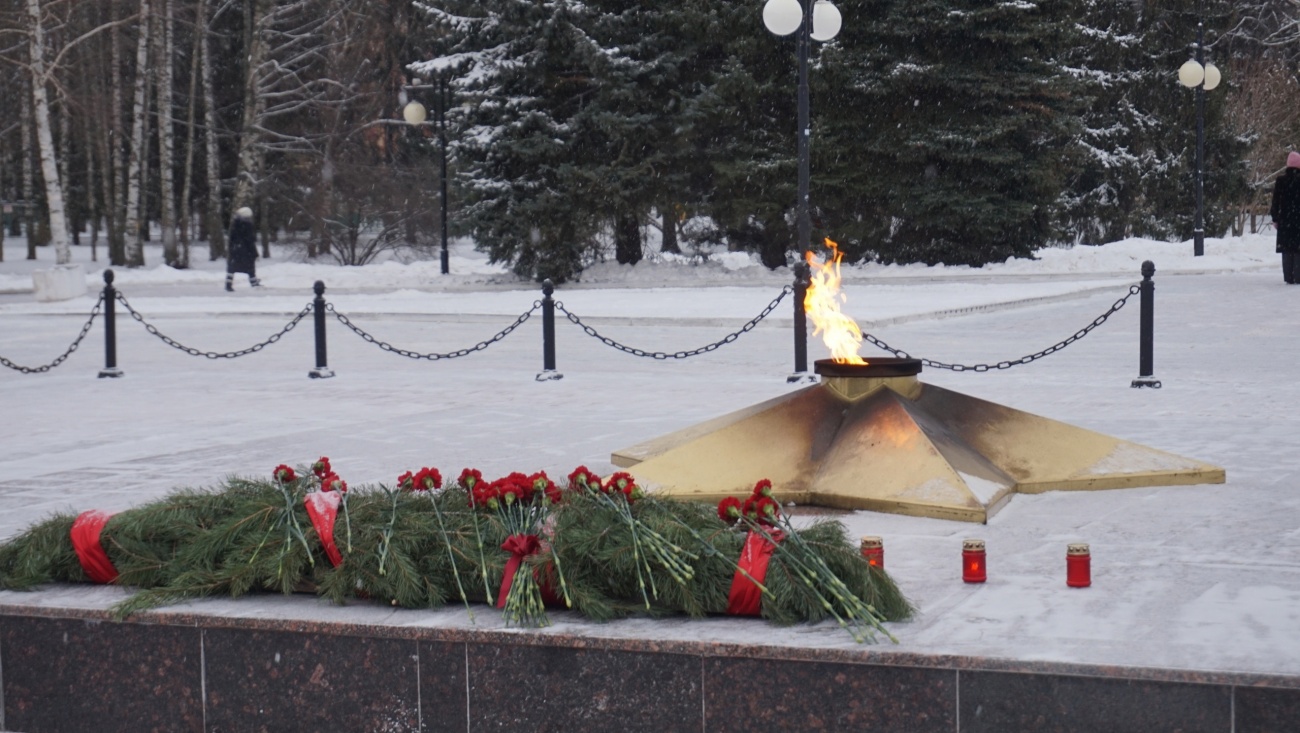 Власти города вместе с представителями патриотических объединений и общественности возложили цветы к Мемориалу Воинской славы и Вечному огню.