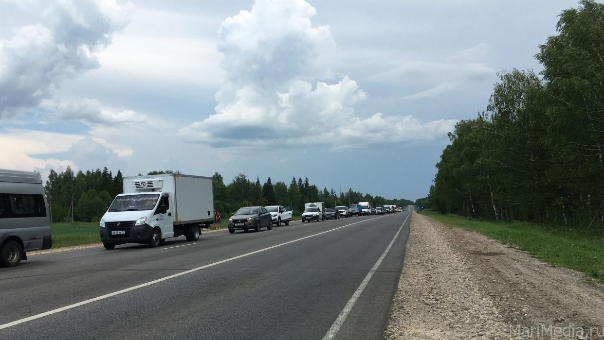 На трассе «Вятка» в Марий Эл в сторону Чебоксар образовалась пробка.