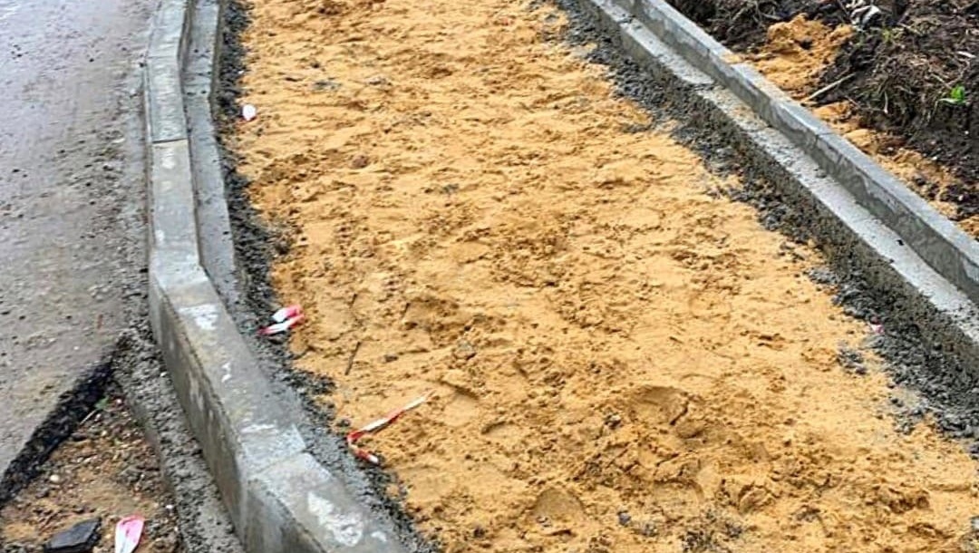 На участке от улицы Первомайской до улицы Рябинина ведутся работы по установке бордюрного камня.