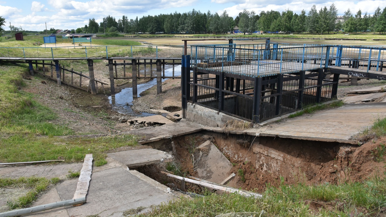 В посёлке Оршанка в майские праздники прорвало дамбу. Ушла вся вода, просел грунт и обрушились железобетонные конструкции.