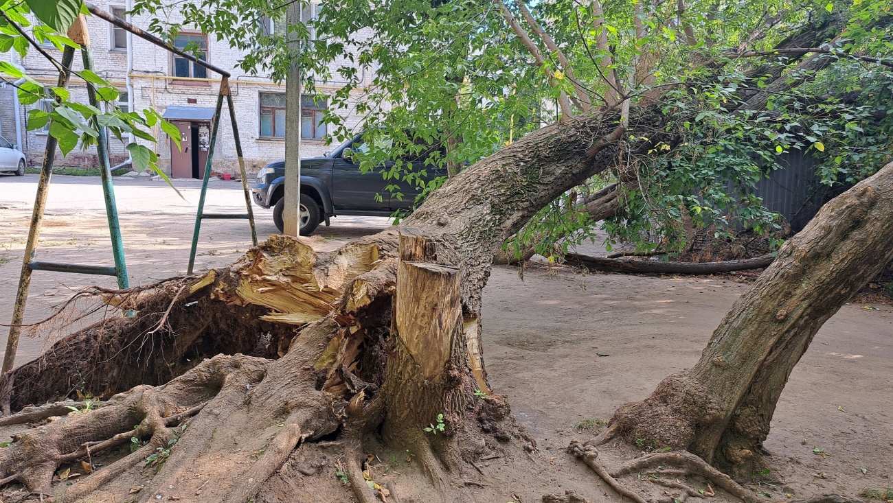 Шквалистый ветер обрушил зелёные насаждения на нескольких улицах города.