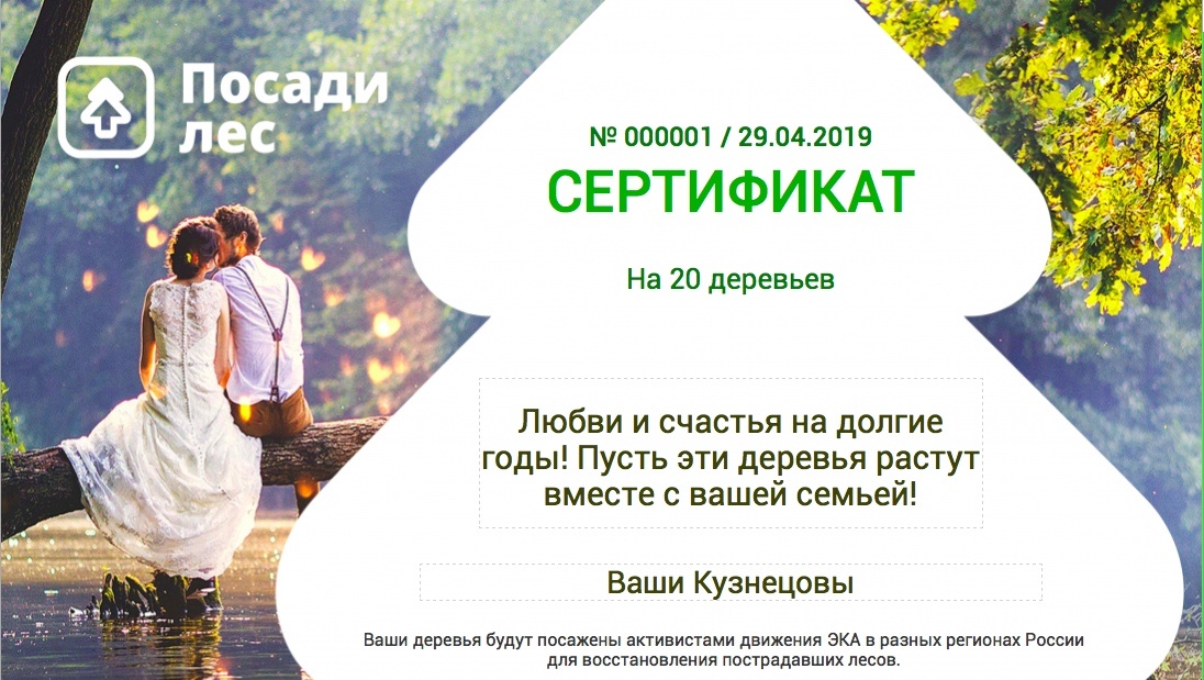 Руководитель проекта «ПосадиЛес» Марианна Мунтяну рассказывает, что такой подарок может стать символом любви и долгих лет совместной счастливой жизни.