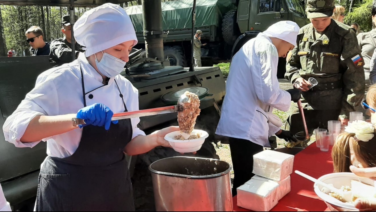 В День Победы в Йошкар-Оле развернули полевые кухни. Горожан и гостей марийской столицы угостили солдатской кашей.