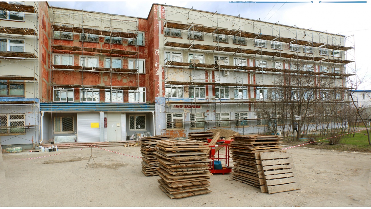 Фасад поликлиники №2 в Йошкар-Оле облицовывают металлокассетами