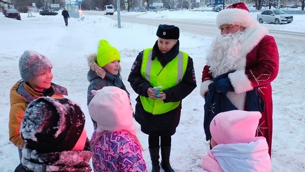 В Козьмодемьянске в рамках Всероссийской акции «Полицейский Дед Мороз» сотрудники Госавтоинспекции и общественники поздравили водителей и пешеходов с Новым годом.