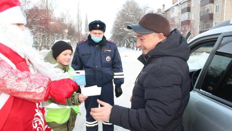 В Йошкар-Оле полицейский Дед Мороз и кадеты профильного класса ГИБДД школы №23 поздравили автомобилистов с наступающим Новым годом.