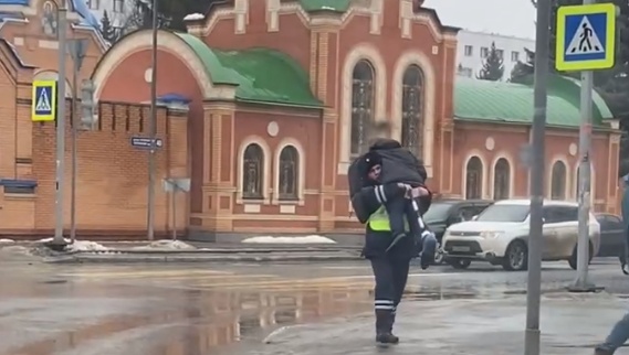 В Йошкар-Оле инспектор ГАИ донёс на руках пешехода до остановки транспорта