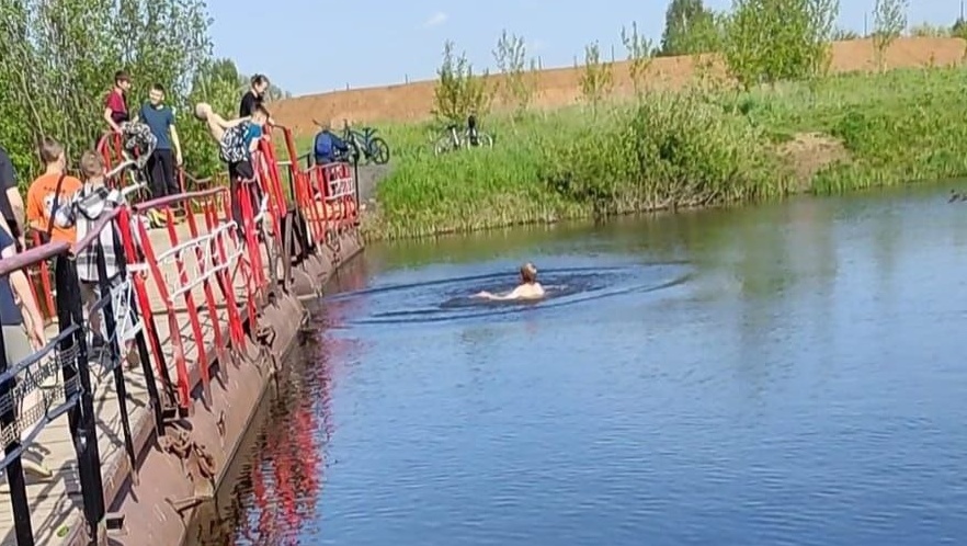 В Йошкар-Оле дети облюбовали для опасных прыжков в воду Понтонный мост