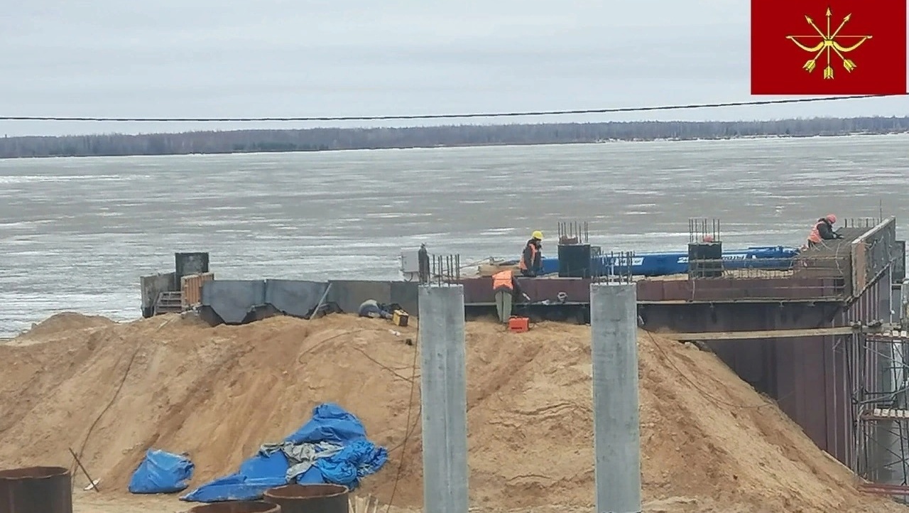 На будущем причале Козьмодемьянска возводят стойки для пешеходного перехода