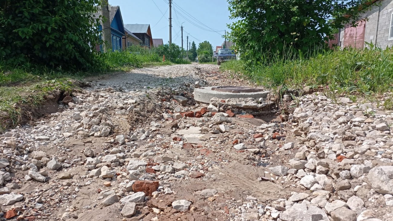 Провал на дороге в Звениговском районе засыпали щебнем