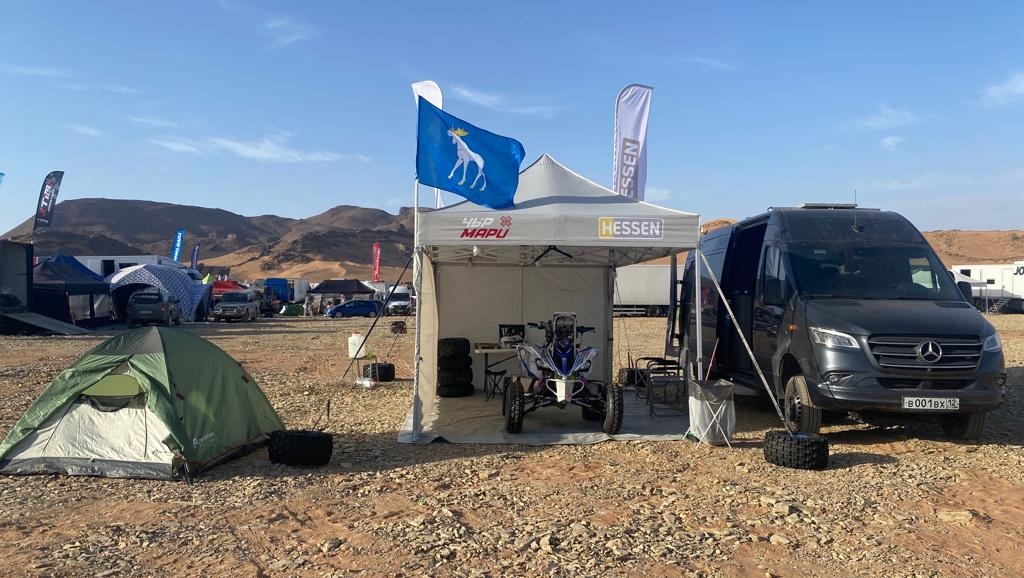 Флаг марийской столицы доставила в пустыню команда квадроциклистов «Чыр Мари». Именно здесь, в 7 км от африканского города Загора, проходят гонки Чемпионата мира по кросс-кантри ралли.