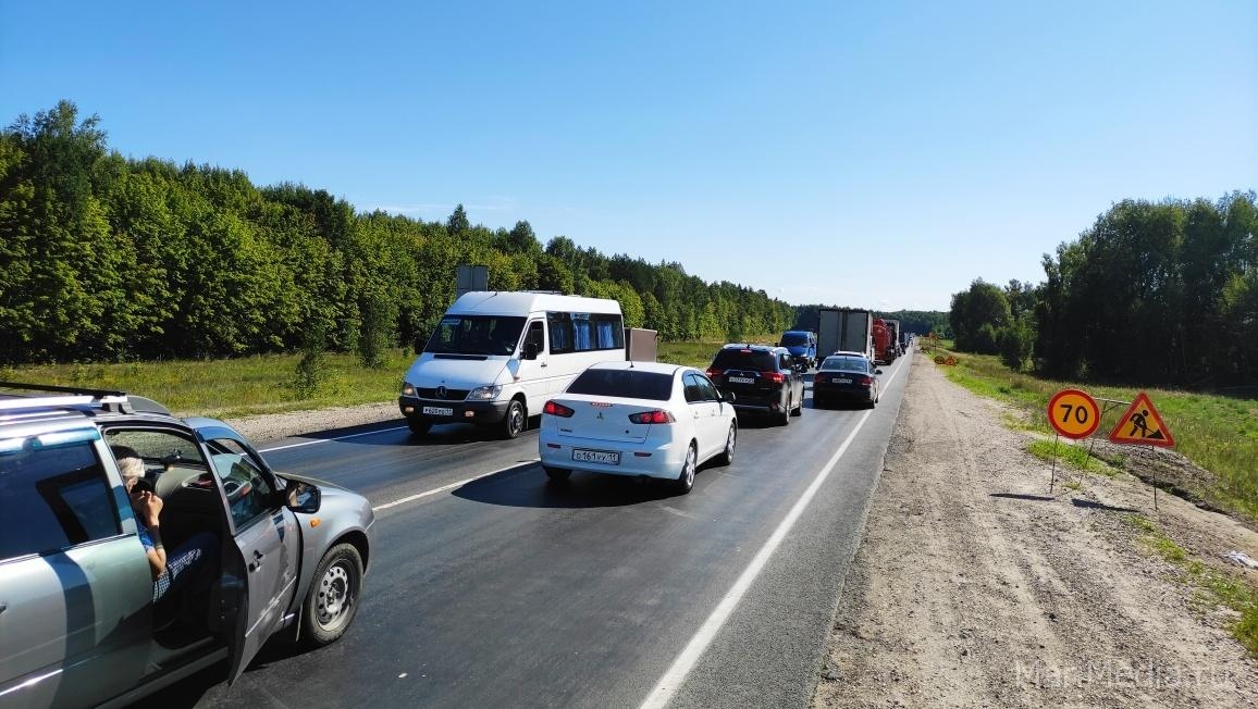 Из-за ремонта автодороги Р-176 «Вятка» водители стоят в пробке