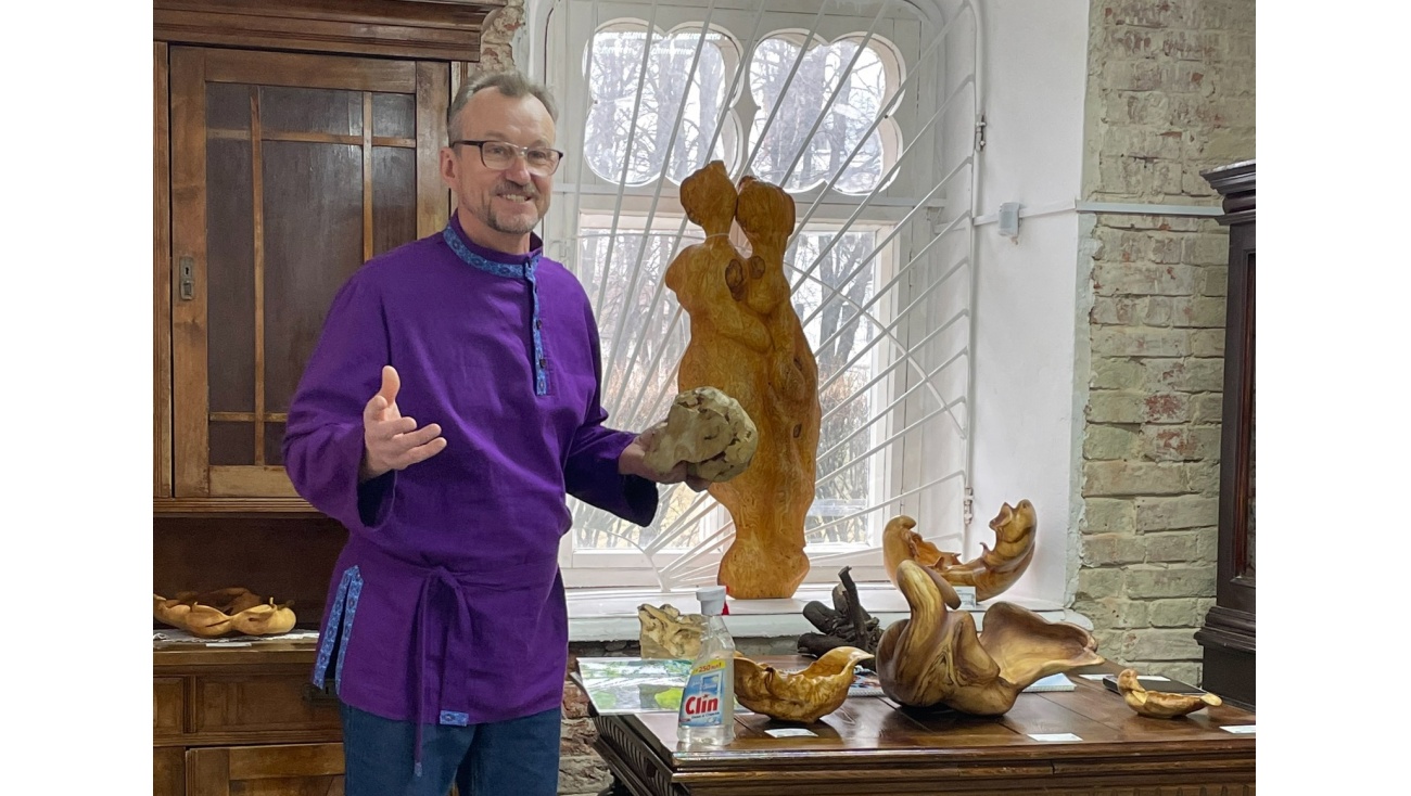 В замке Шереметева в Юрино сегодня открылась выставка «Природы волшебство». Её представил резчик по дереву Павел Николаев.