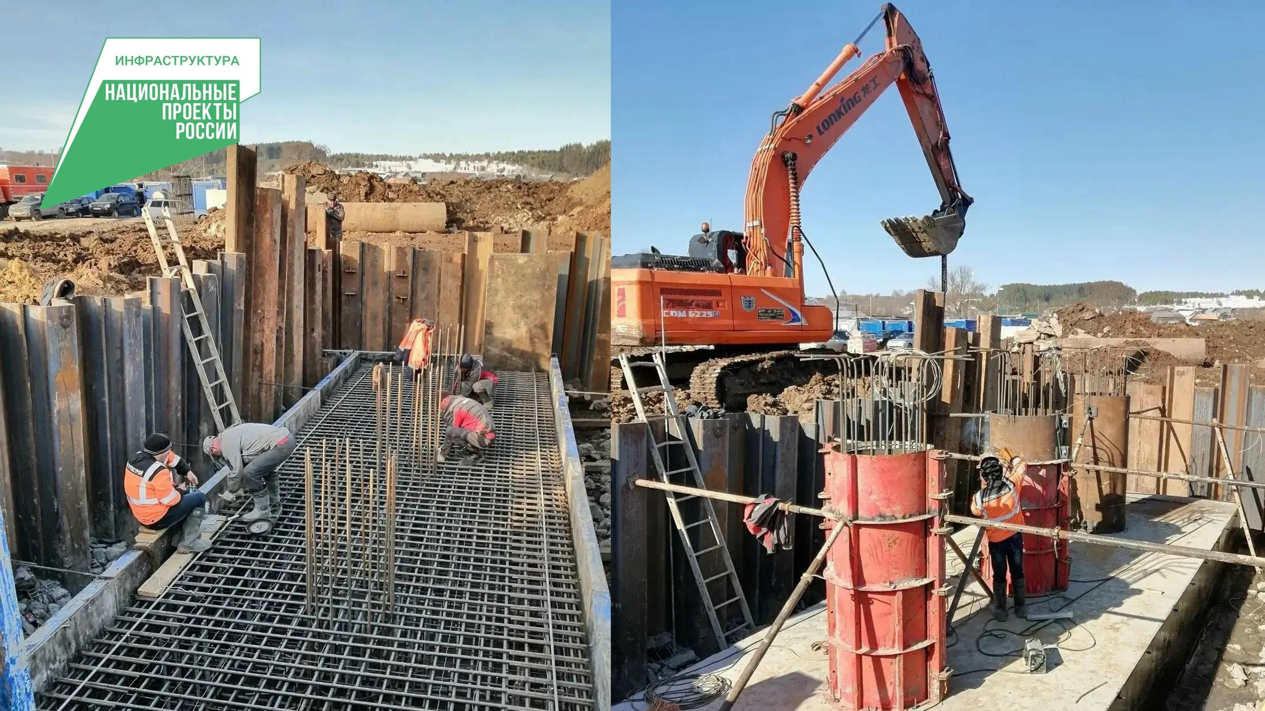 На объекте приступили к устройству сопряжения и подготовке к монтажу балок пролётного строения. Устройство трёх опор мостового сооружения уже выполнено. Работы должны завершить до 9 ноября.