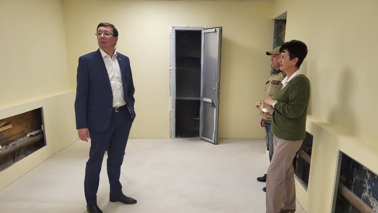 В настоящее время здесь ремонтируют полы, стены и потолки. Строители заменили окна, двери, кровли. Готовность объекта составляет 38%.