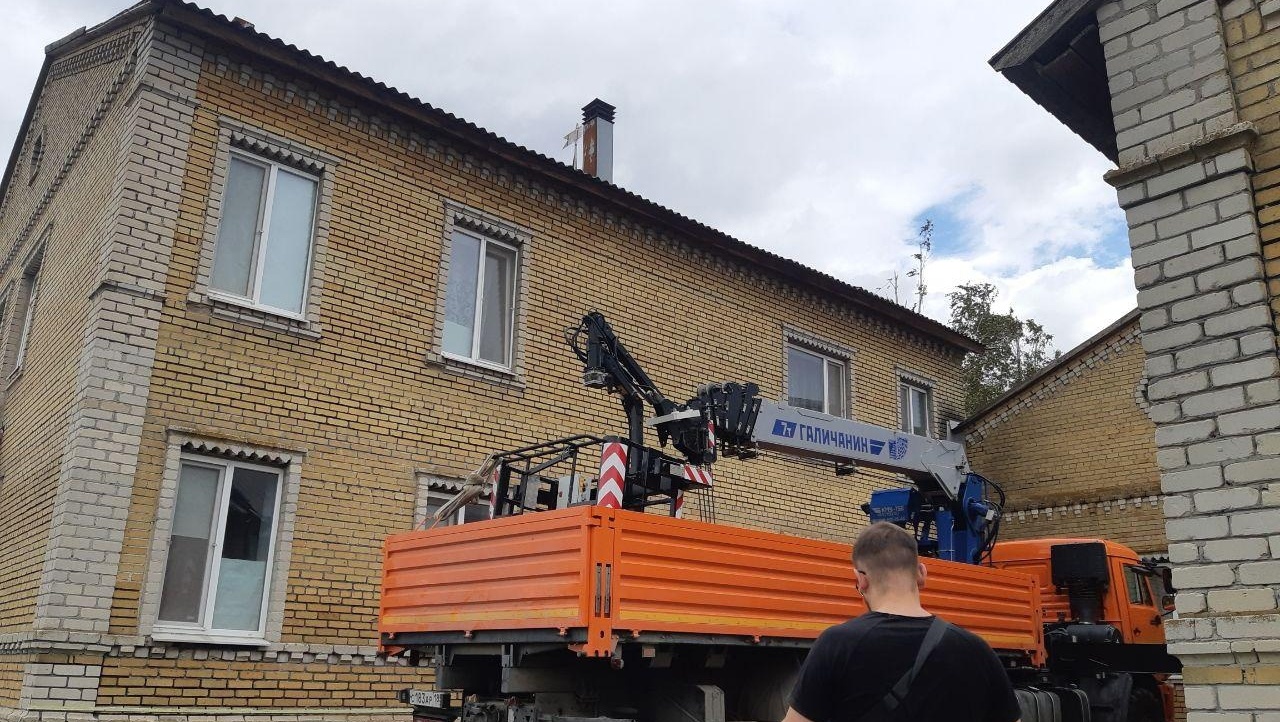 Мастера из ремонтно-восстановительной бригады обследовали верхнюю часть дома, определили...