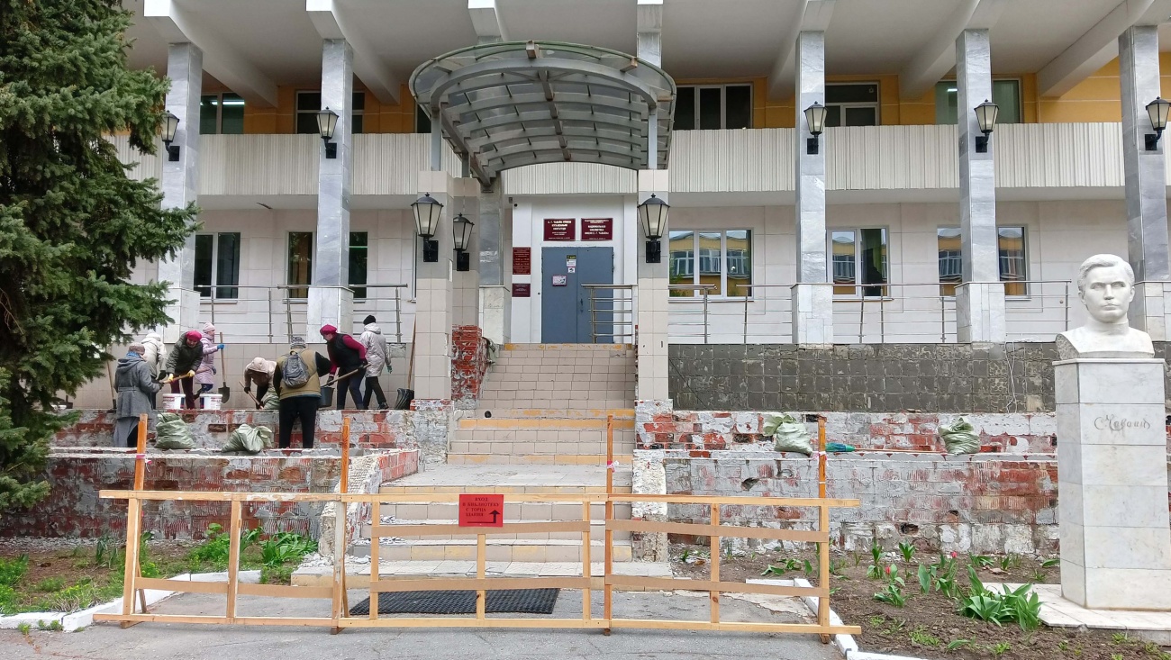 Сотрудники учреждения уже убрали землю с клумб для проведения работ. После завершения ремонта её засыпят обратно, и уже летом цветы будут радовать на новом крыльце.