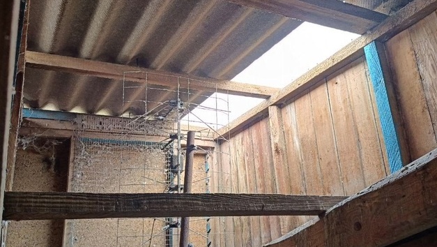 Как отмечают в местной администрации, у крыши серьёзные повреждения, местами на ней нет шифера, поэтому во время дождей помещения будет заливать водой...