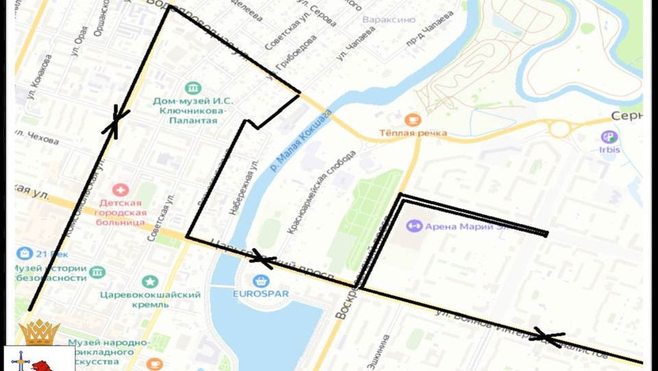 Министерство транспорта и дорожного хозяйства Марий Эл сообщает, что транспорт будет двигаться по схеме, представленной на фото.