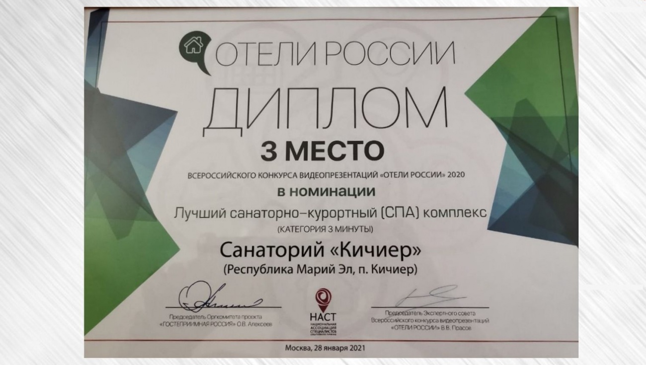 Санаторий «Кичиер» занял третье место во Всероссийском конкурсе видеопрезентаций «Отели России-2020» в номинации «Лучший санаторно-курортный ...