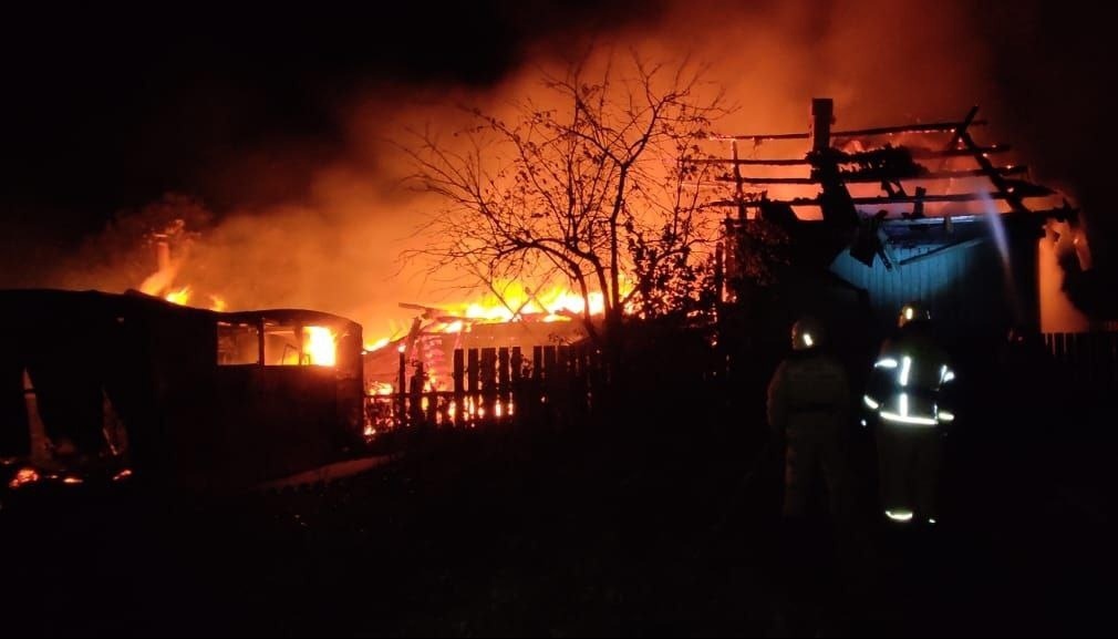 К моменту прибытия пожарных расчётов открытым пламенем горели хлев и баня на площади около 100 квадратных метров.