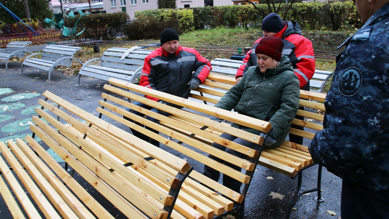 На аллее Победы в посёлке Медведево силами осуждённых установили новые скамейки и урны