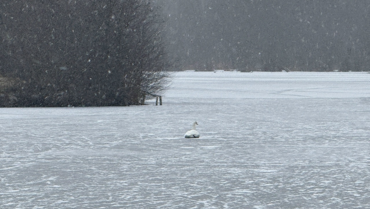 В этом году одна из таких птиц задержалась на пруду в деревне Большая Руясола. Сельчане каждый день внимательно следили за ней. И вот на днях, когда крепко подморозило, они заметили, что лебедь примёрз ко льду.