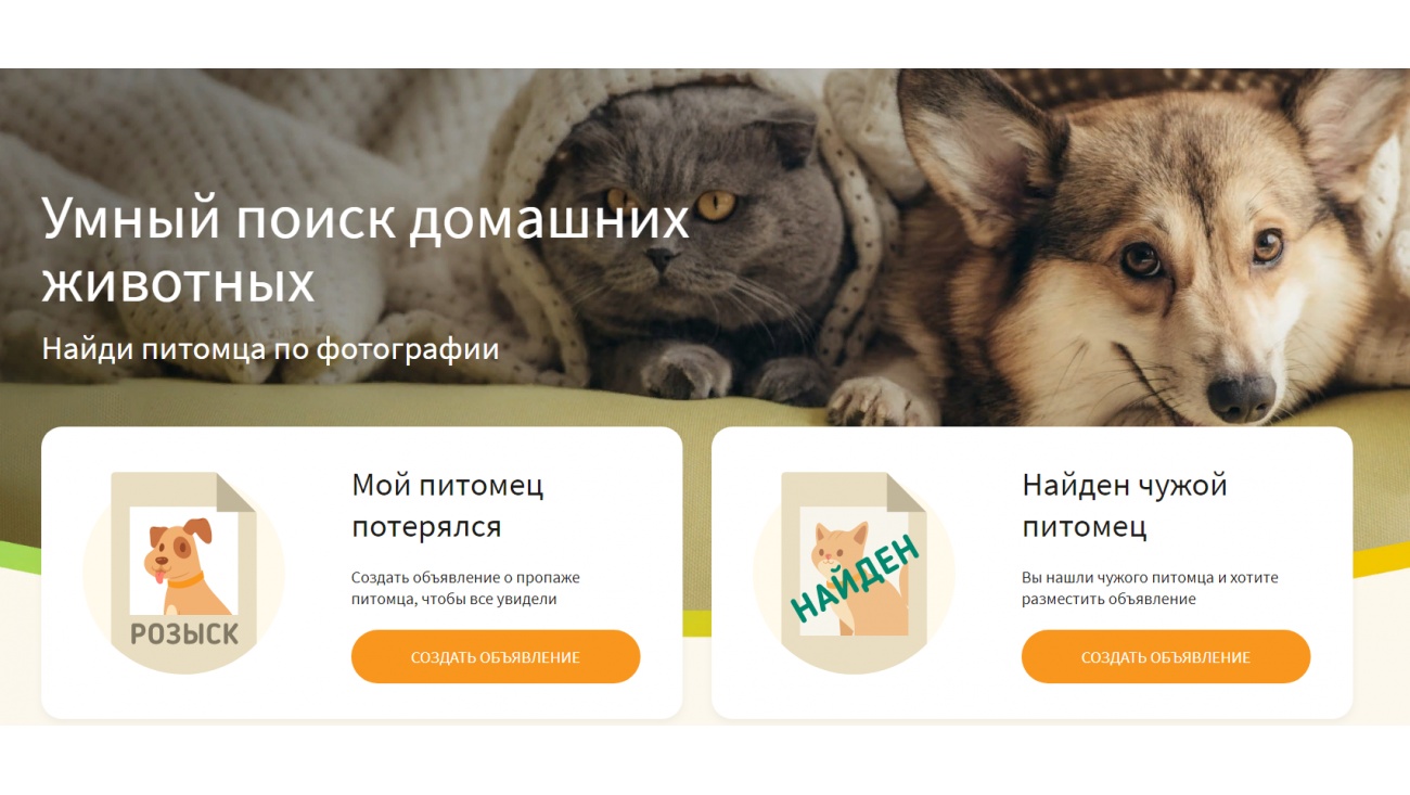 Сайт «Умный поиск домашних животных» поможет найти пропавших собак и кошек.