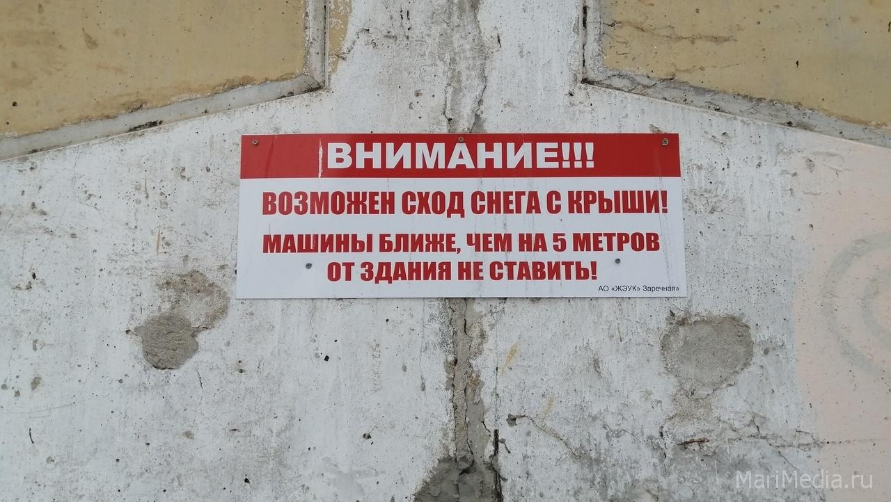 Жителей Йошкар-Олы просят проявить осторожность, проходя мимо таких зданий. Бдительнее нужно быть и при парковке транспорта.