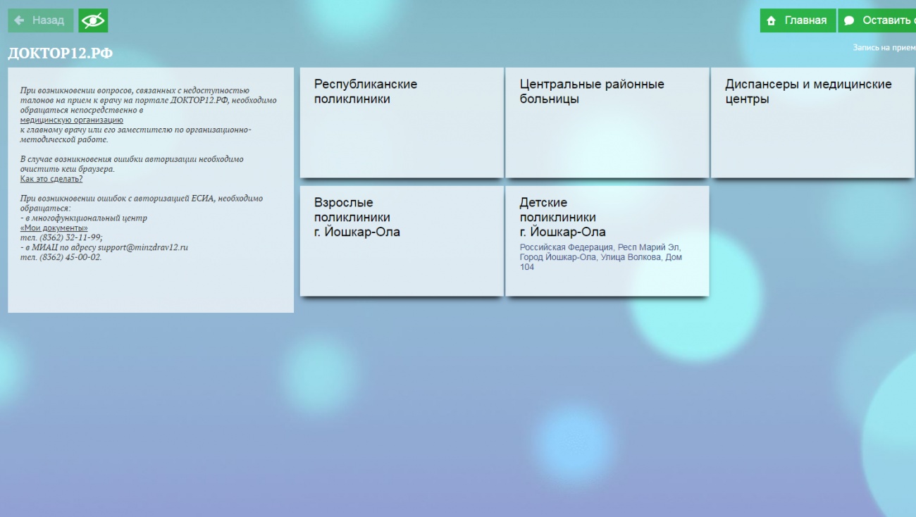 В Марий Эл в выходные не будет доступа к порталу «Доктор12.рф»