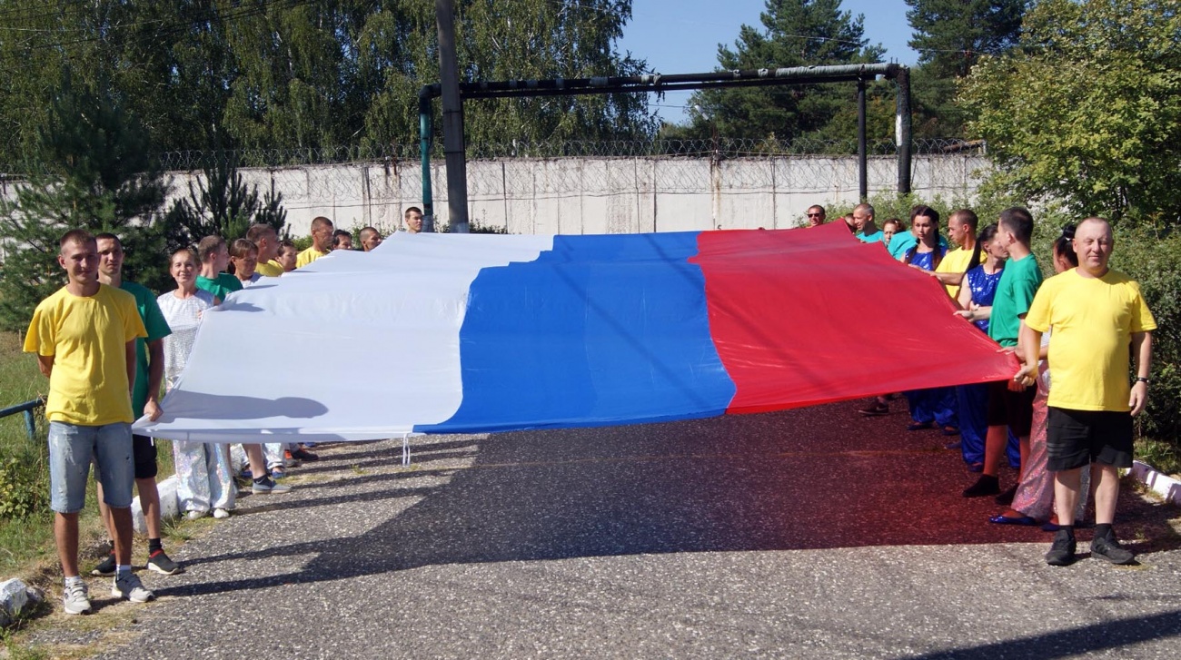 Осужденные ИК-7 сняли патриотический видеоролик и пронесли 15-метровый триколор