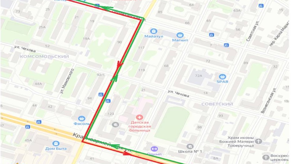 В связи с проведением ремонтных работ с четверга, 27 августа, до 17:00 11 сентября будет ограничено движение автотранспортных средств по четной стороне улицы Советской на участке между улицами Хасанова и Волкова.