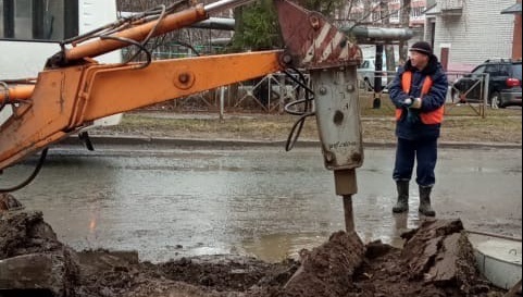 На улице Чехова в Йошкар-Оле устраняют аварию на водопроводе.