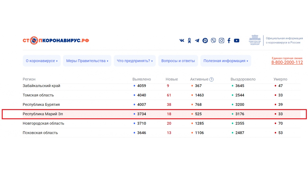 В России за последние сутки было зарегистрировано 5 475 подтверждённых случаев новой коронавирусной инфекции COVID-19 в 84 регионах, в том числе в Марий Эл — 18.