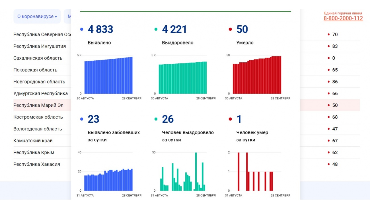 За последние сутки в России подтверждённых случаев новой коронавирусной инфекции — 26 097 в 85 регионах. В Марий Эл — 52.