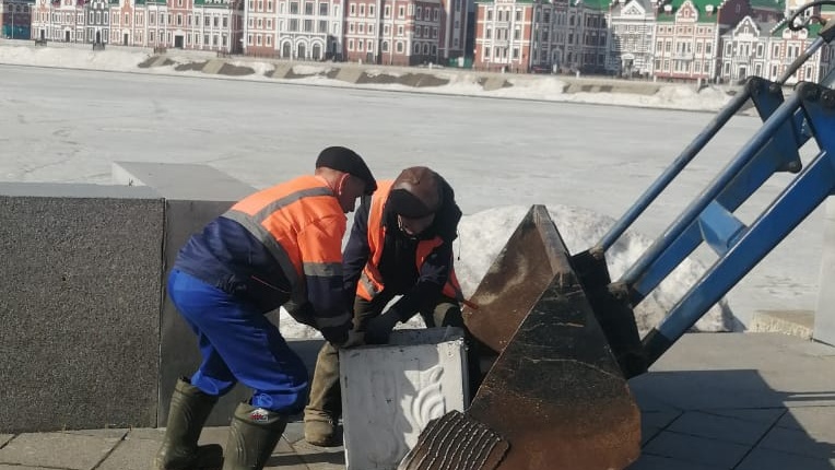 Установку в рамках весеннего месячника начали сотрудники МУП «Город». Кроме того, коммунальщики продолжают сбор мусора, подметание общественных пространств , а также приступили к мойке дорожных ограждений Центрального моста Йошкар-Олы.