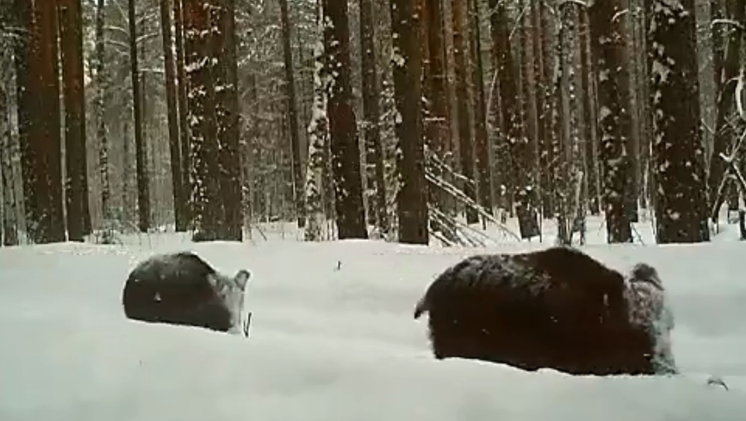 Экологи Марий Эл поделились редкими кадрами трапезы медведя и кабанов