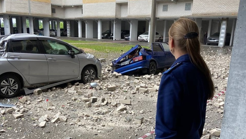 Чудом под кирпичи не попали люди. Но под ударом в прямом смысле слова оказались припаркованные во дворе автомобили. Несколько транспортных средств сильно повреждены.