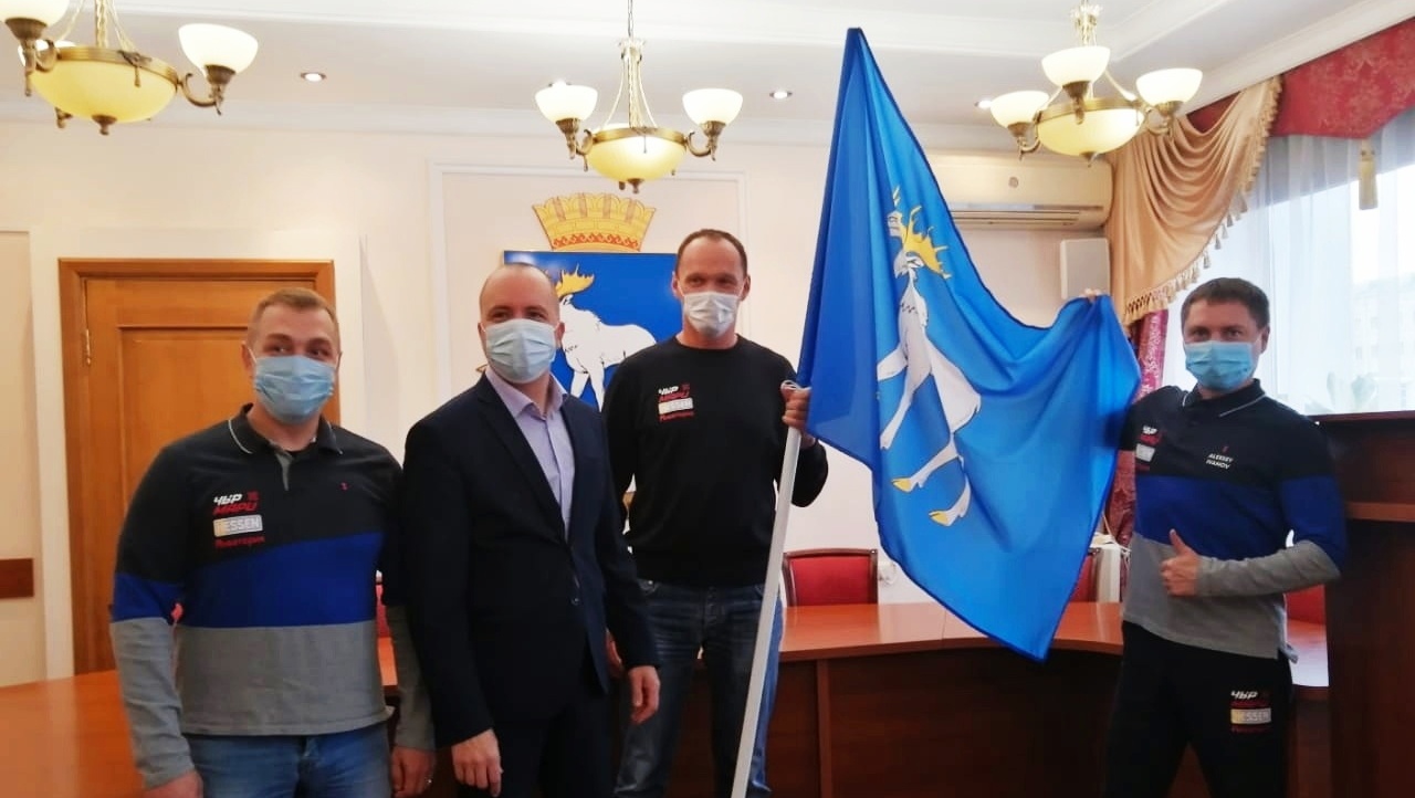 Сегодня мэр города Евгений Маслов вручил пилоту команды квадроциклистов «Чыр Мари» Александру Максимову флаг Йошкар-Олы.