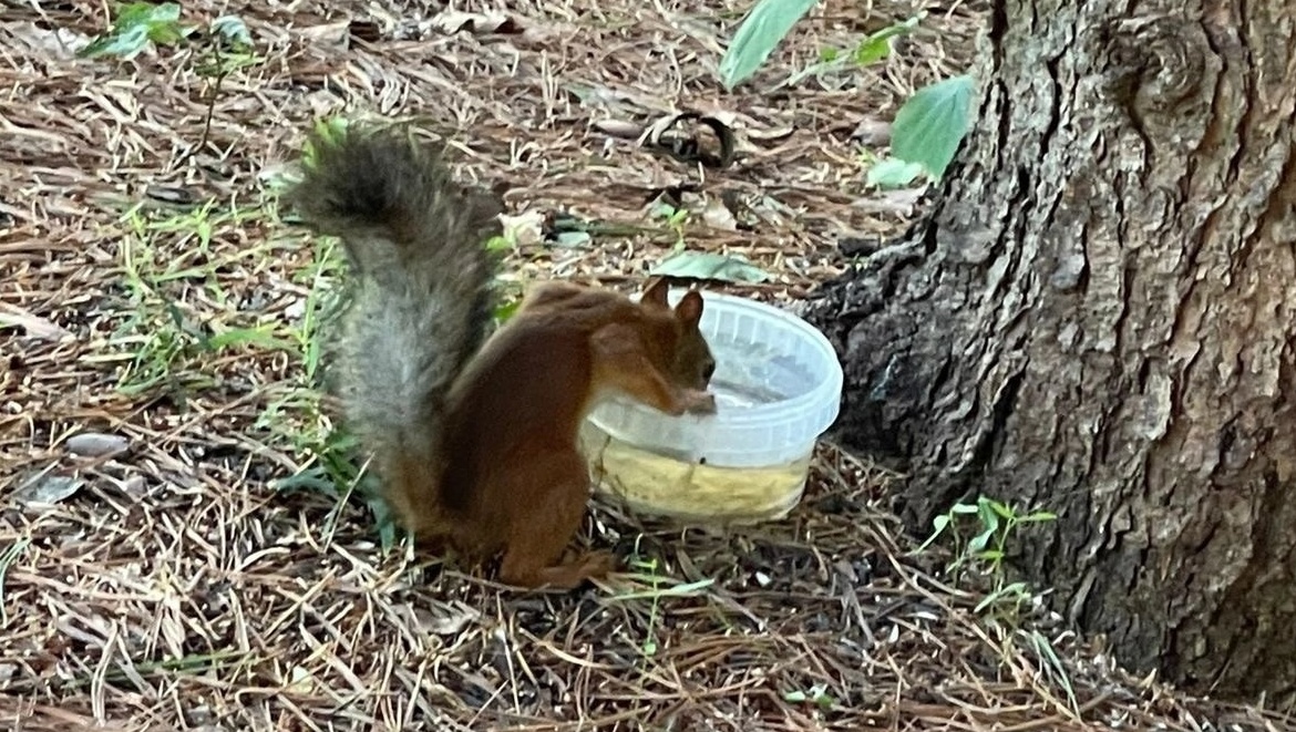 Зверки устраивают настоящее пиршество, после которого на дорожках возле деревьев набираются горы шелухи.