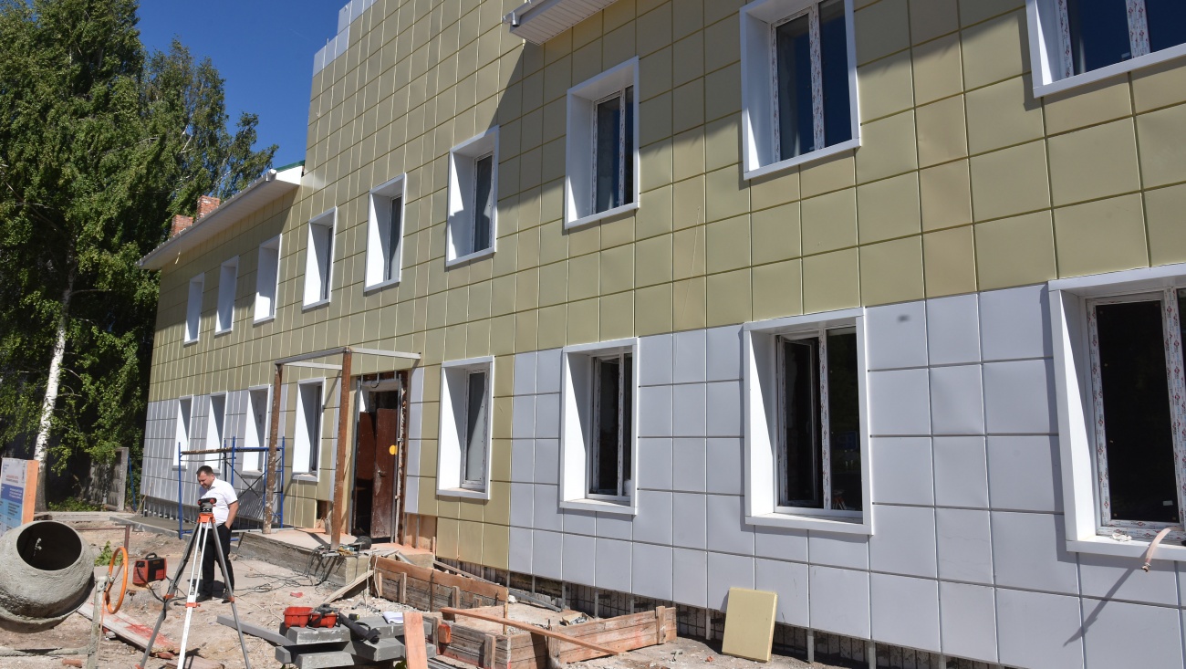 Практически завершён монтаж фасада и нового крыльца. Сейчас внутри идут отделочные работы: покраска, монтаж акустических потолков, укладка напольных покрытий.