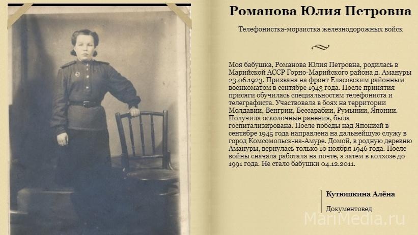 9 мая 2020 года на страницах сайта МариМедиа истории фронтовиков, героев Великой Отечественной войны, наших дедов и прадедов, бабушек и прабабушек.
