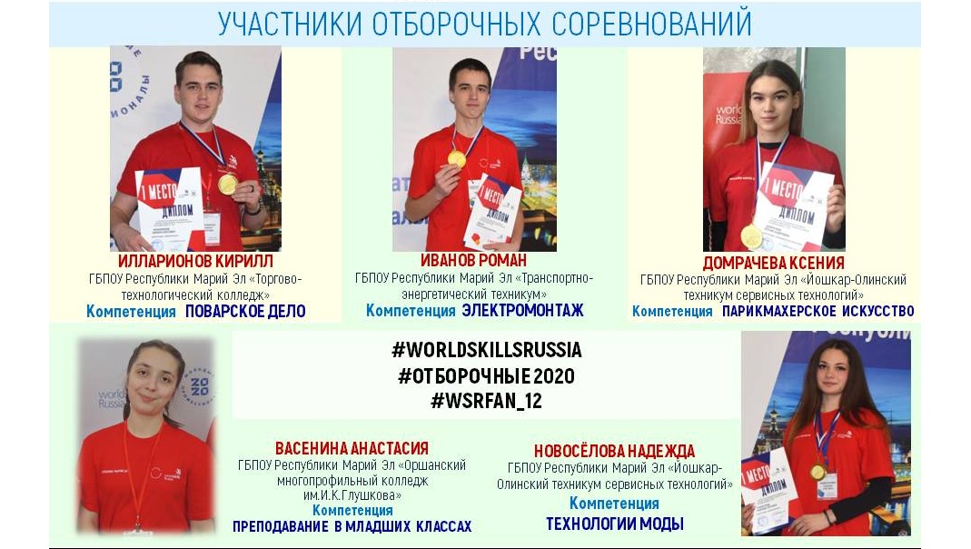 Соревноваться за право участия в финале VIII Национального чемпионата WorldSkills Russia будут студенты: Йошкар-Олинского техникума сервисных технологий, Торгово-технологического колледжа, Оршанского многопрофильного ...