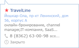 - Расширенная контактная информация (гиперссылка на корпоративный сайт, Email, Skype, соц. сети)