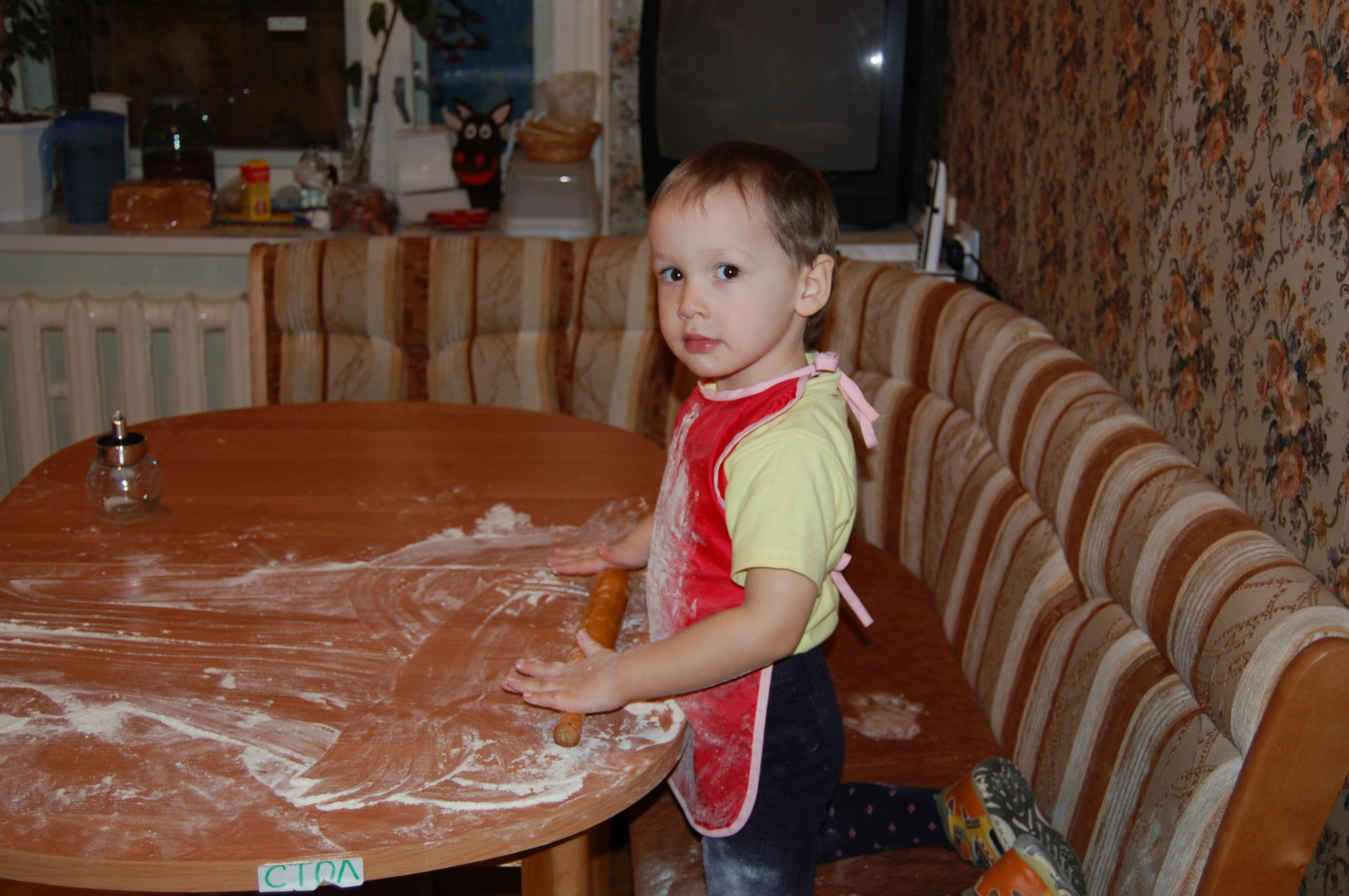 Почему эта фотография заявлена на конкурс. При каких обстоятельствах снята. Чем ребенок помогает по дому: Месить тесто, печь пироги - совсем не то же самое, что убирать свои игрушки. Делать что-то новое, при этом находясь рядом с мамой - огромное удовольствие для малыша. А потом если еще и накормить гостей пирогами собственного приготовления, то маленький помощник будет просто счастлив!